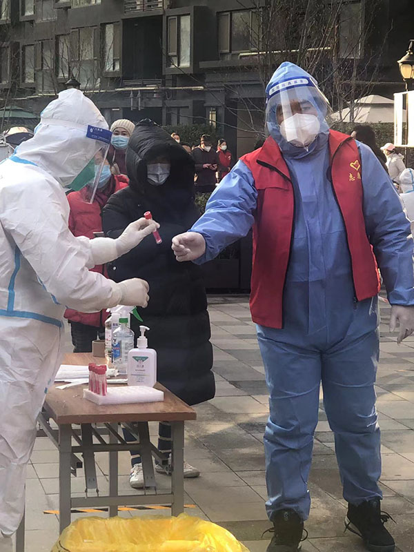 全面动员,吹响下沉集结号。12月28日晚,接到住建厅的通知后,资金中心连夜行动,全员动员,中心全体员工积极响应、踊跃报名,先后派出了11名同志,他们当中,有优秀的党员干部和入党积极分子,还有普通职工、年轻同志,他们克服困难,冲在前沿,亮明身份,下沉网格,支援社区疫情防控工作。中心还有3名同志由于各种原因,没能加入“抗疫小分队”,就主动联系社区,就地当起了志愿者。