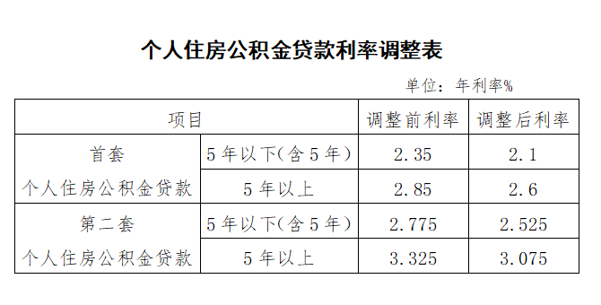 一、自2025年5月8日起,下调个人住房公积金贷款利率0.25个百分点,5年以下(含5年)和5年以上首套个人住房公积金贷款利率分别调整为2.1%和2.6%,5年以下(含5年)和5年以上第二套个人住房公积金贷款利率分别调整为2.525%和3.075%。
